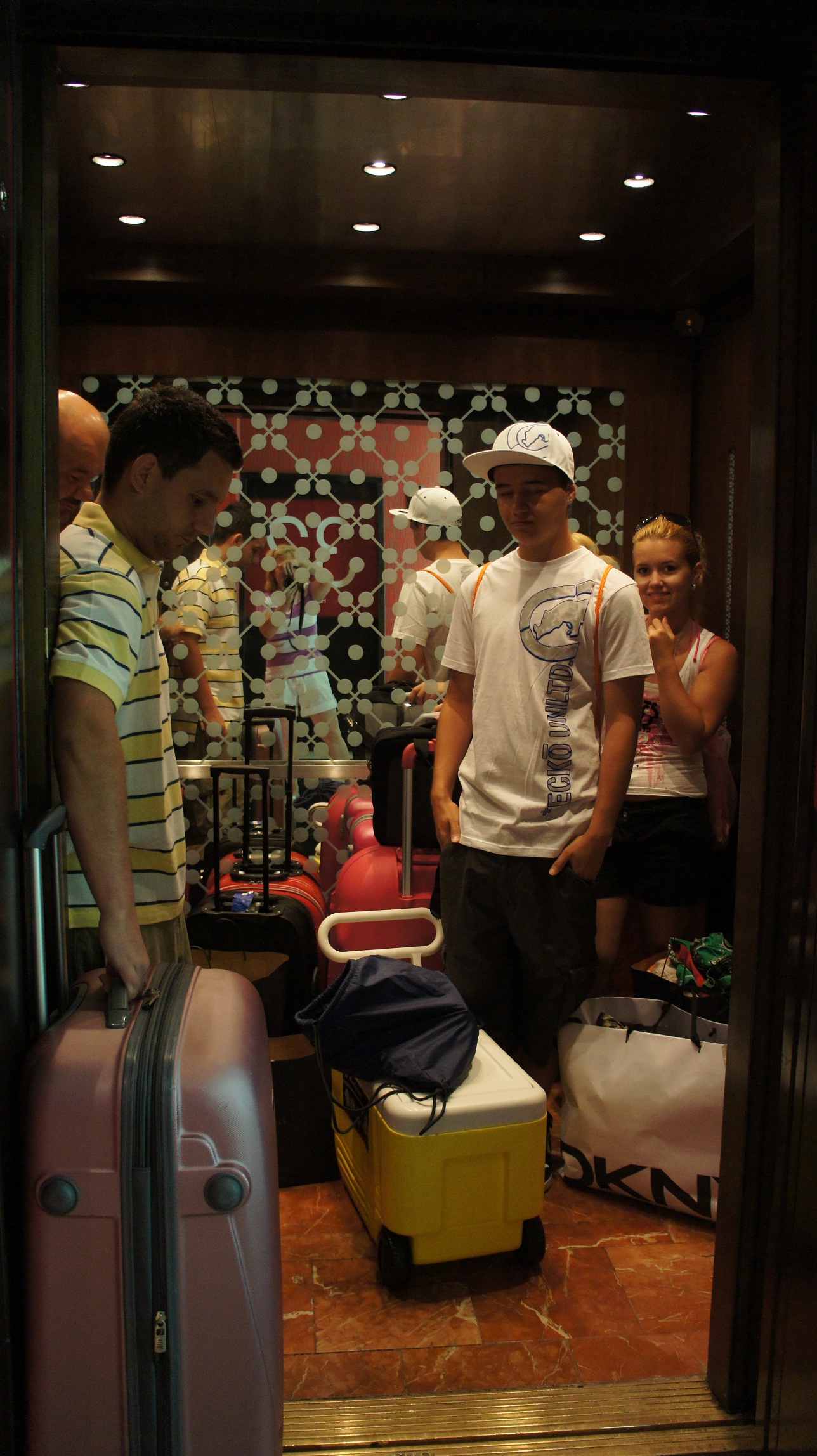 Vandaag gaan we naar onze vierde Staat en vijfde National Park. Het doel van vandaag is Death Valley. Douchen, inpakken, uitchecken. Ondertussen hebben we al zoveel koffers verzameld dat wij vier liften voorbij hebben laten gaan, zodat wij alleen, met al onze koffers, in de lift passen.