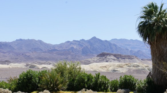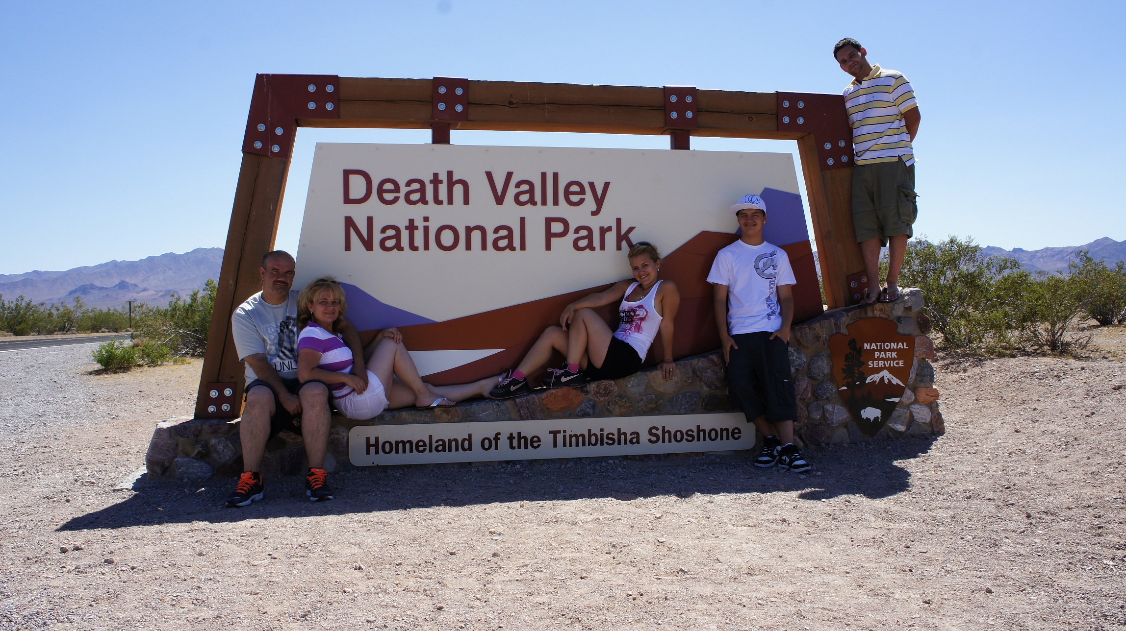 Natuurlijk maken wij weer de verplichte stop bij het bord van Death Valley. De weg is hierna een stuk minder saai. De natuur is weer anders dan in de andere parken. Het ziet er ruig uit met een mooie bergkam op de voorgrond en naast ons heuvels. Het verbaasd ons zeer dat er toch nog groen is.