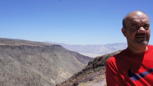 We vervolgen onze weg en stoppen nog even bij Father Crowley Point. Father Crowley Point bereik je na een stevige klim, hier houden wij toch wel goed onze temperatuurmeter in de gaten. Af en toe doen wij dus ook trouw de airco uit, zodat de temperatuur van de auto weer even terugzakt. Je hebt hier een mooi uitzicht op de vallei van Death Valley, het is hier ook al gelijk een stuk koeler. Hier nemen wij met wat foto’s afscheid van Death Valley.