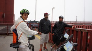 De klim naar de voet van de Golden Gate was in ieder geval voor mij een hel. Het was zwaar, we hadden constant wind tegen. Ik wilde wel doorgaan maar mijn knieën wilden niet. Ang had weinig problemen, het merendeel van de klim zat hij op zijn zadel, heel af en toe liep hij naast zijn fiets. Dani heeft een goede conditie en heeft natuurlijk ook zijn leeftijd mee, maar zelfs hij moest af en toe zijn meerdere erkennen in de klim.