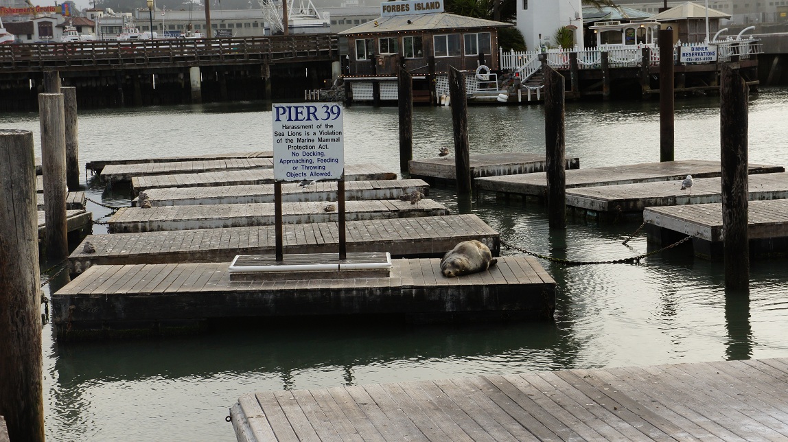 De afdaling verliep vlot en veilig. Hierna zijn we door gefietst naar Fisherman’s Wharf, want wij waren nog steeds niet naar Pier 39 gegaan om de zeeleeuwen te spotten. Dit was dus een tegenvaller want er waren er maar een paar. Ze trekken in Juli en Augustus naar het zuiden om te broeden. Ach, weer een reden om terug te komen. Hier hebben we nog een paar winkeltjes bezocht en wat gewandeld. Ondertussen was het al 20.00 uur, tijd om de fietsen terug te brengen en een taxi naar het hotel te pakken.