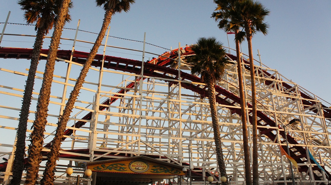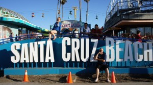 Na de lunch zijn we naar Santa Cruz gereden. In Santa Cruz hebben ze op de strandpromenade een kermis. Deze kermis heeft twee museumstukken. Een achtbaan en een draaimolen. De Giant Dipper zoals de achtbaan heet is in 1924 gebouwd. Hij vormt, net als de draaimolen met uit hout gesneden paarden uit 1911, een nostalgisch museumstuk tussen wat modernere attracties. We hebben mazzel, want op maandag en dinsdag kosten alle ritjes maar $1,–. Ang en Dani gaan in een achtbaan met een looping, hierna lopen wij naar de Giant Dipper. Wat een geweldige rit was dit. Wat hebben wij een lol gehad. Dani zegt: “Al is de achtbaan 87 jaar oud, naar mijn mening is dit één van de beste achtbanen waar ik ooit in ben geweest, de rij ging snel, het ritje was lang, en je zat lekker door de comfortabele stoelen”.