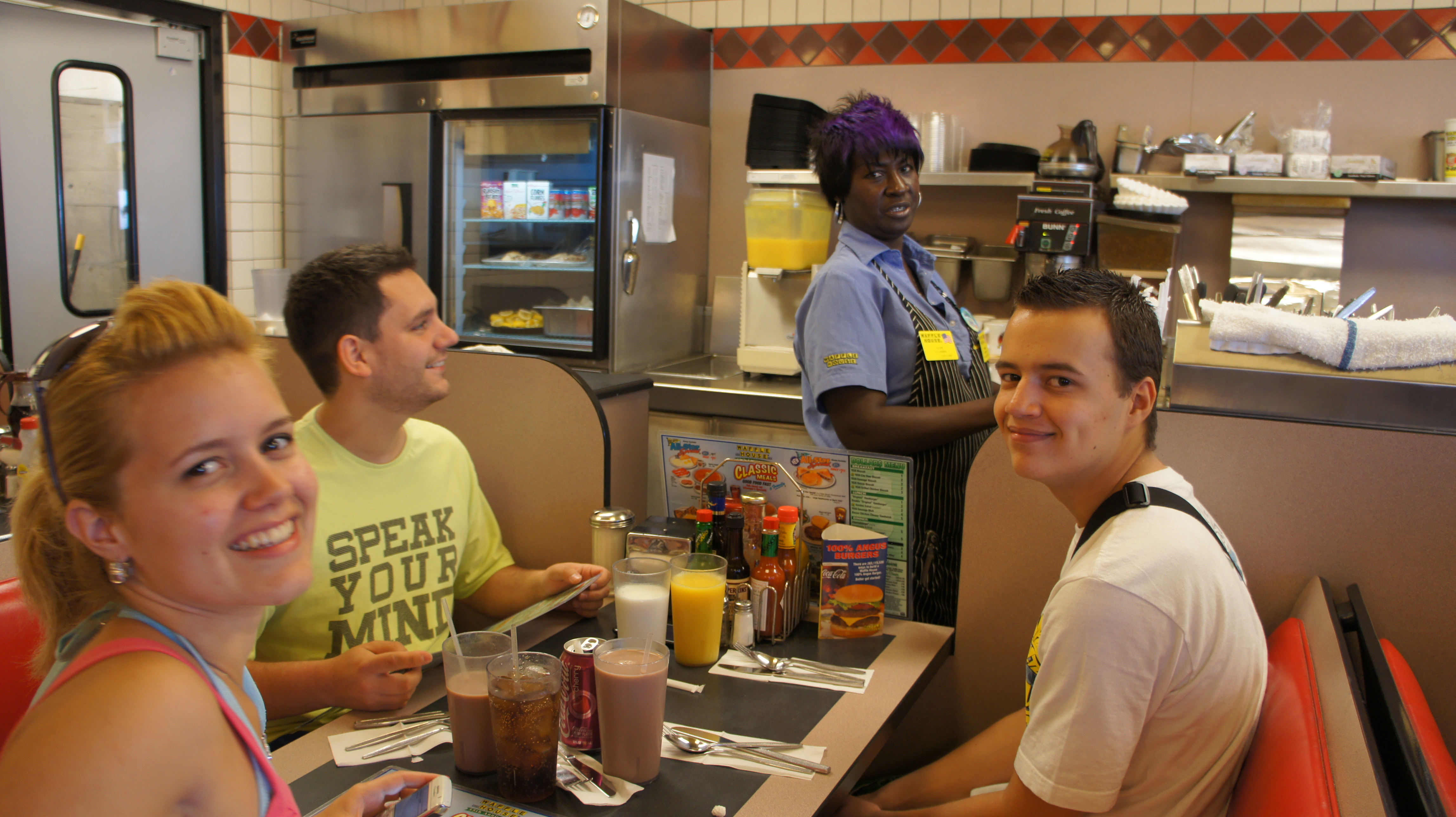 Om zeven uur zijn we allemaal opgestaan en hebben wij de koffers gereorganiseerd, zodat we niet iedere dag alle koffers moeten meeslepen. We zijn uitgecheckt en op zoek gegaan naar Waffle House, daar hadden wij in 2009 heel erg lekker ontbeten. Het was weer heerlijk en “onze”