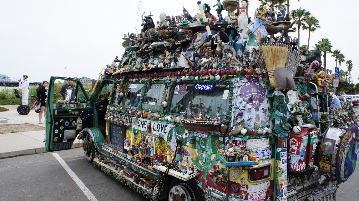 Onze gids is Luis. Een knul uit Madrid. Zijn moeder komt uit Californië en zijn vader is Madrileen. Hij is in Madrid grootgebracht en studeert nu al twee jaar in de USA. Om zichzelf te onderhouden werkt hij in een restaurantje en doet hij deze tours. Al snel gaan we op pad. Hij brengt ons naar een park, we steken over naar de boulevard en rijden zo een tijdje langs het strand. Van de boulevard gaan we langs de leeuwen van de Santa Barbara Zoo. Onderweg komen wij een bestelbusje tegen die zeker niet gemist mag worden op het blog. Na een kleine donatie mag ik foto’s maken.