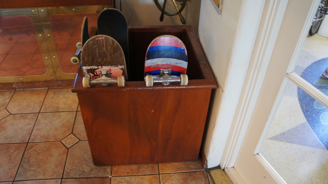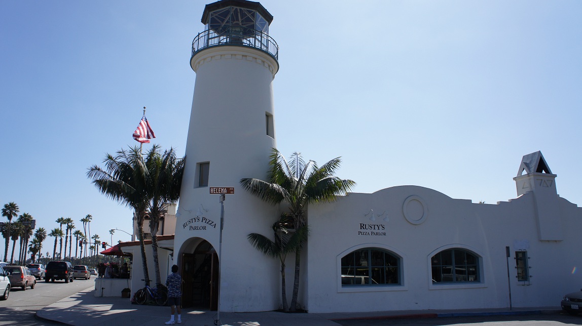 Schuin aan de overkant hebben we in een “vuurtoren” gegeten. We kunnen wel zeggen dat we lekker gegeten hebben hier. De kip was lekker pittig en de pizza’s rijkelijk gevuld. Bij een pizza combo kon je ook gebruik maken van de salade bar. Heel erg lekker. In Nederland hebben wij normaal gesproken een paraplubak staan bij de deur, in Santa Barbara niet……………………..