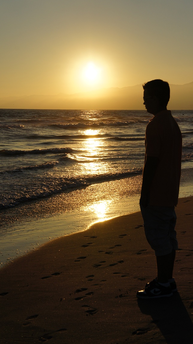 Wilden we nog even naar het strand, dan moesten we nu wel richting Santa Monica rijden. Het wordt hier natuurlijk een stuk eerder donker dan bij ons in Nederland. De temperatuur daalt ook stevig zodra de zon onder is. We wandelen heel even over het strand, nemen wat foto’s van de zonsondergang. We zien op zo’n drie honderd meter de pier van Santa Monica liggen. We zien er een reuzenrad en achtbaan staan maar besluiten toch om er niet heen te lopen aangezien het wel ver is en wij toch wat manken in ons midden hebben. Car’s been is toch wel opgezet en zijn scheenbeen doet pijn.