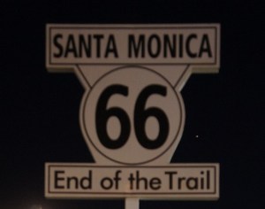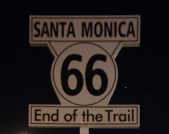 Aangezien we een tijdje moeten wachten op een tafel, maken we een rondje over de pier. Op de pier staan een aantal attracties, Dani wilde wel in de achtbaan, dat wilden al die 300 miljoen Amerikanen ook wel. Hij was dus ook wel heel snel terug. Hij had duidelijk geen zin om te wachten. Natuurlijk maken we ook een foto van het bord dat het eindpunt markeert van Route 66.