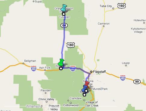 Hierna rijden we een stukje richting het westen, om zo bij Williams uit te komen. Rond exit 165 verlaten wij de Interstate en rijden zo William binnen via een stukje Route 66. Route 66 was de route die tot 1985 Chicago met Los Angeles verbond.