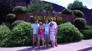 Vanmorgen waren we allemaal om 07.00 uur op en we hebben er ruim twee uur over gedaan om te douchen, ontbijten, koffers inpakken en uit te checken. Rond negenen zijn we vertrokken richting Slide Rock State Park. Nu denken jullie vast allemaal twee uur voor die paar dingen. Dat viel eigenlijk best wel mee maar we moesten op Dani wachten, hij had de taak namelijk om onze afsluitbare diepvrieszakken te vullen met ijsklontjes voor de koelbox. Wij waren hem eigenlijk al een tijdje kwijt dat Ang maar eens is gaan kijken waar hij bleef, bleek dat de ijsmachine één ijsklontje per keer gaf. Ja, zo kunnen we blijven wachten tot Sint Juttemis. Uiteindelijk had hij twee volle zakken. Twee zakken is alleen niet genoeg om alles goed koel te houden, wij besloten daarom om langs de supermarkt naast ons hotel te gaan hier hebben wij ijsklontjes gekocht. De zak ijsklontjes was zo groot dat ik onze diepvrieszakken met klontjes waar Dani zo lang over had gedaan heb moeten weggooien. Je had het gezichtje moeten zien.