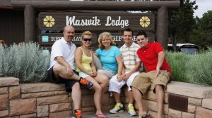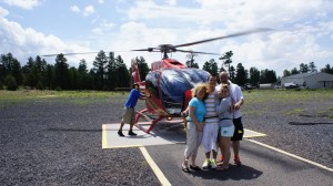 Het loopt een klein beetje uit maar uiteindelijk mogen wij om 10.15 uur naar de helikopter lopen. Onze piloot was een hele lieve dame die ons van alles aanwees en vertelde over haar mooie Arizona. We vlogen eerst over het Kaibab National Forest, dit is een zeer groot plateau met allemaal bomen. Je hebt niet het idee dat je hoog vliegt. Dan zie je verderop de rand van de Canyon, je weet dat het daar ineens ophoudt en dat je dan de afgrond inkijkt. Lieve mensen wat er dan gebeurt kan ik niet omschrijven. Het is zo onbeschrijfelijk indrukwekkend dat Ro en ik geëmotioneerd raken en spontaan de tranen in onze ogen sprongen, de mannen kregen kippenvel, zo zijn wij toch allemaal op de een of andere manier geraakt door wat wij vandaag meegemaakt hebben. Na afloop hadden we allemaal even ons momentje rust nodig om te verwerken wat wij zojuist beleefd hadden.
