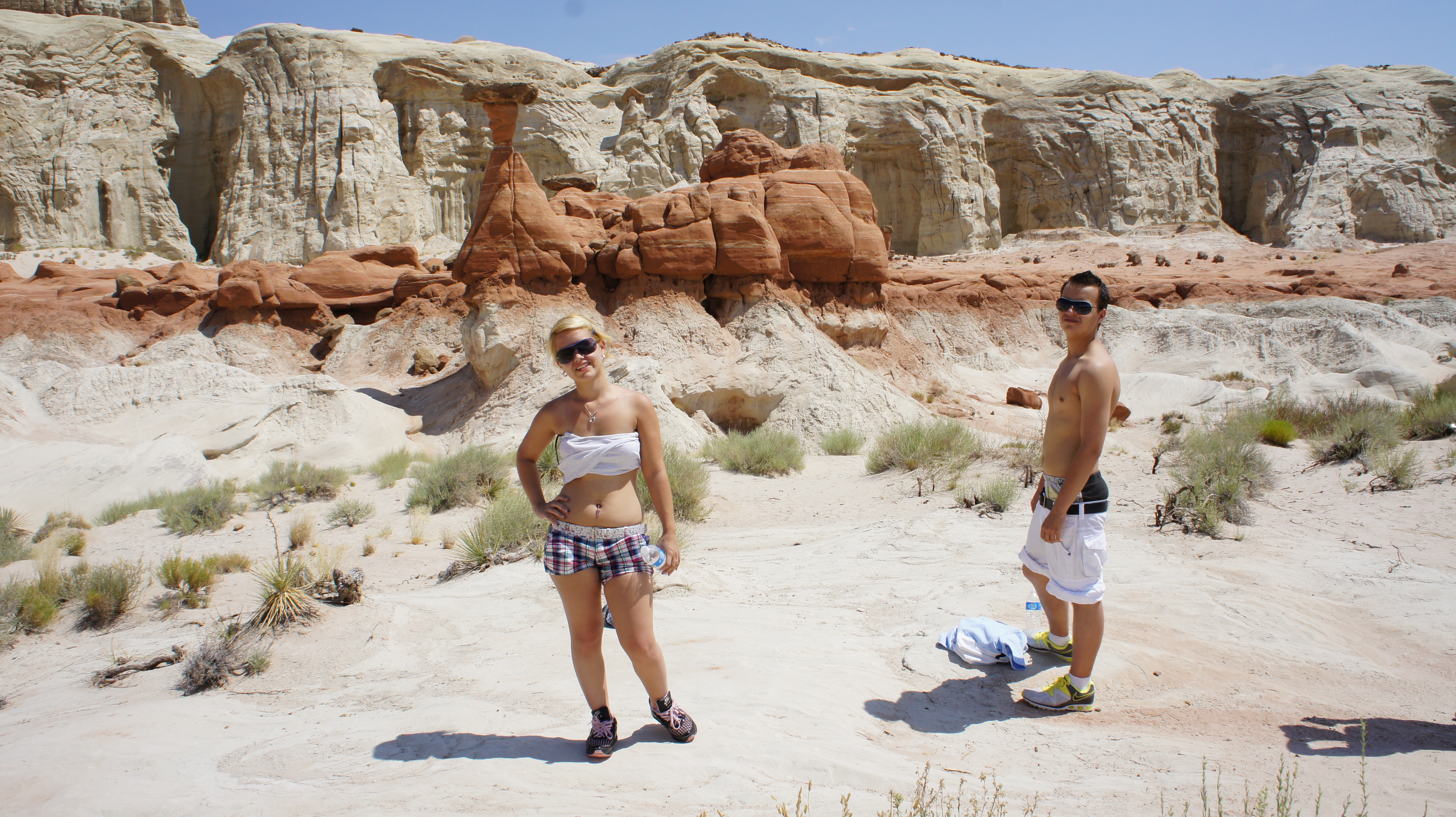 Zoals ik eerder al zei is het rond de 40 graden, klimmen en klauteren bij deze temperaturen voel je wel, maar we hebben er van genoten en het was een leuke wandeling. De hoodoos staan er mooi bij, wij zijn super trots op elkaar, dat wij deze mooie wandeling gedaan hebben.  het is alleen onbegrijpelijk dat de natuur dit gedaan heeft.