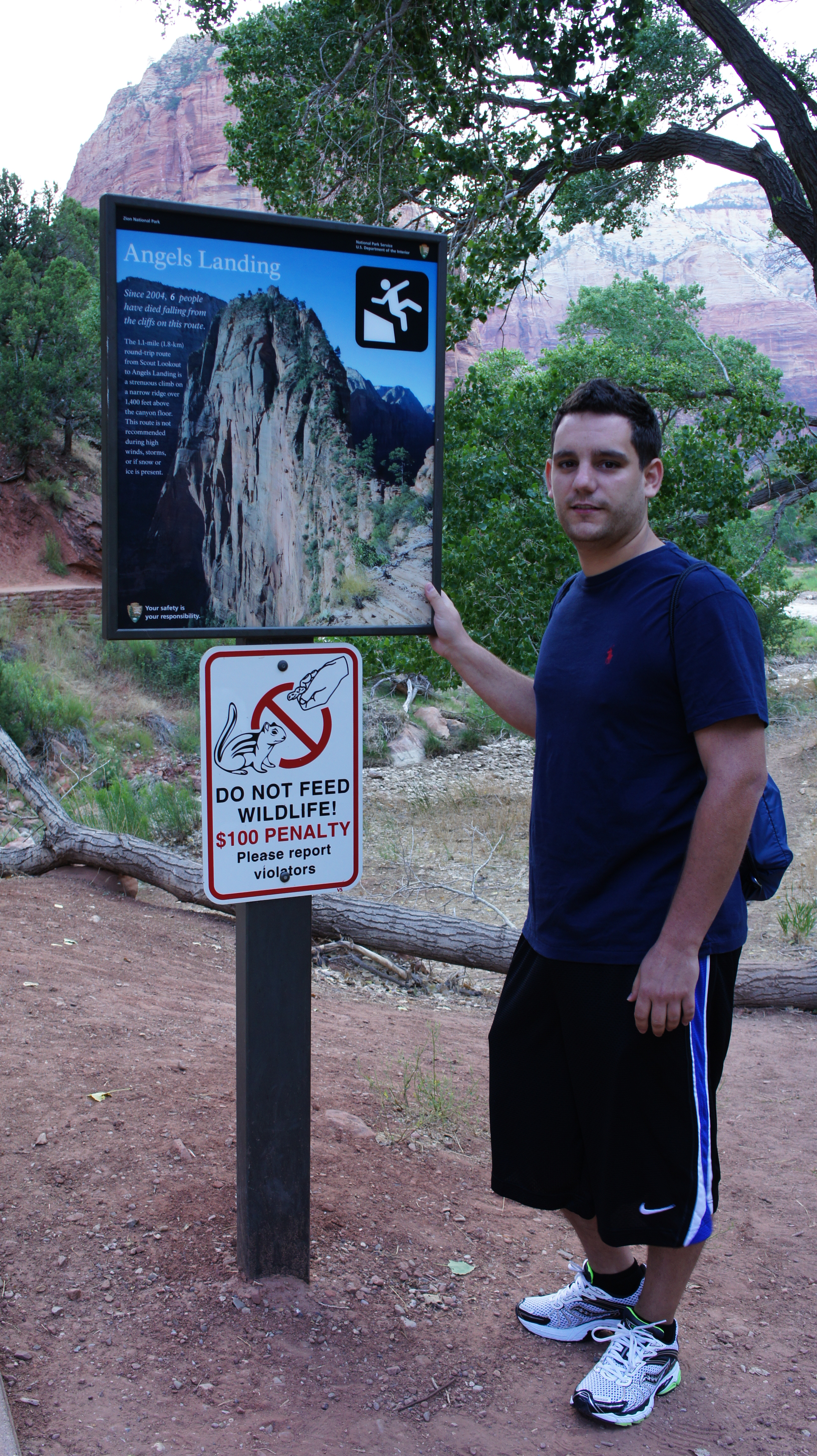 Ang en ik hadden afgesproken dat zodra wij het gevoel hadden dat we het te eng vonden we zouden stoppen en geen risico zouden nemen. We hebben ongeveer vanaf Scout’s Overlook een paar honderd meter afgelegd wanneer ineens bij Ang zijn hoogtevrees de controle kreeg en het voor hem teveel werd, Ang besloot om terug te keren naar Scout’s Overlook, alsnog heeft hij een geweldige prestatie neergezet en ben ik super trots op hem, want zelfs tot daar was het vaak eng om de diepte in te kijken. We zaten behoorlijk hoog. Je hebt het toch maar gedaan.