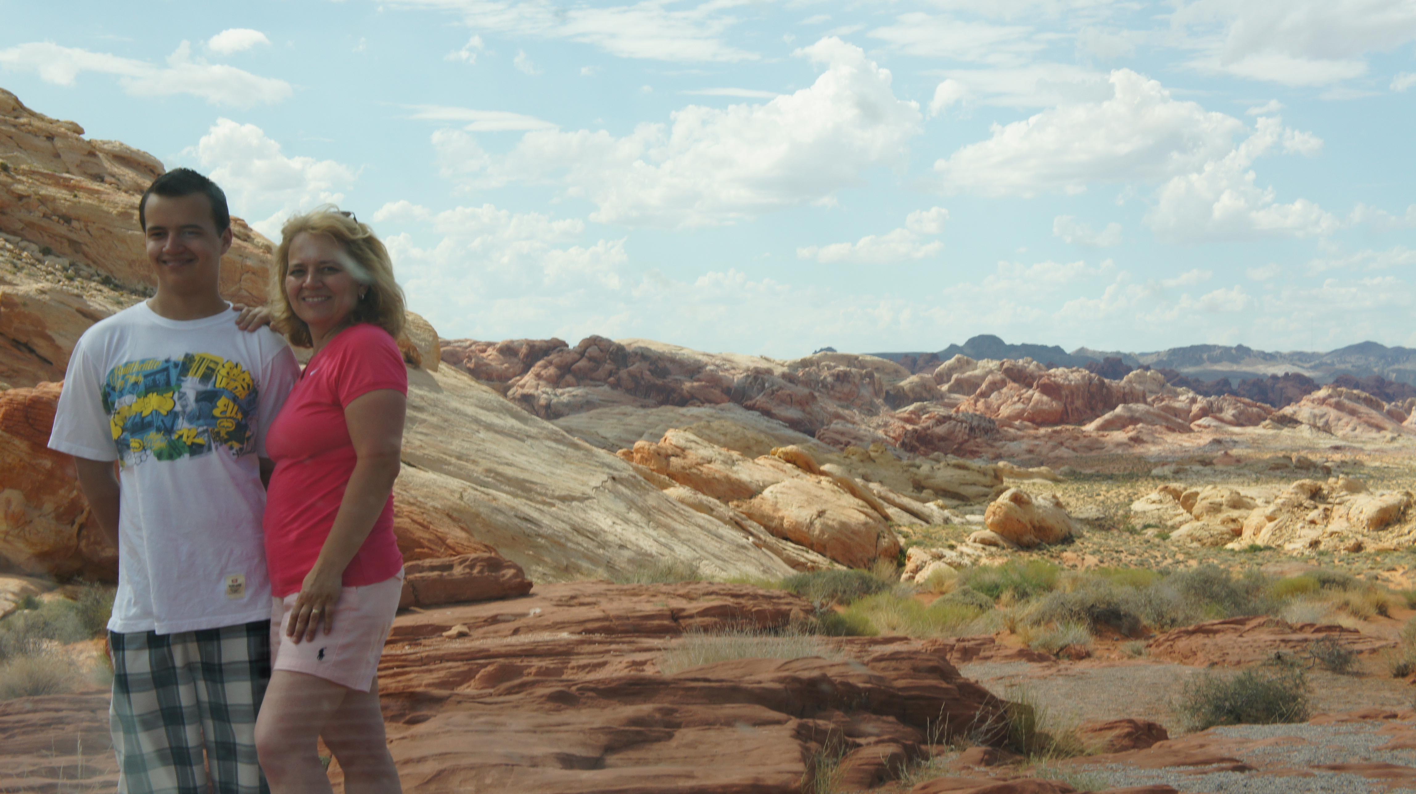 Iets na 11 uur waren we terug in het hotel. We hebben ons wat opgefrist, Car en de kinderen hadden tijdens onze wandeling de auto al ingepakt. Hierdoor hoefden we alleen maar in te stappen en konden we op weg naar Las Vegas via de Valley of Fire.