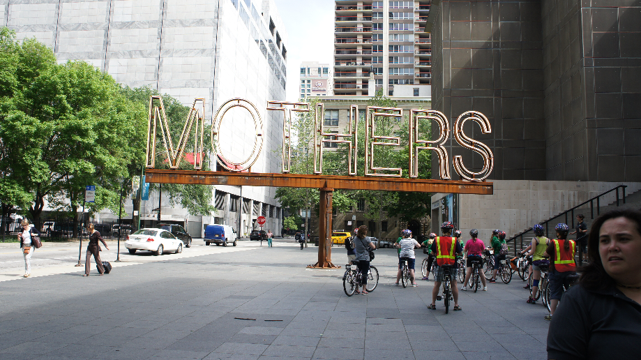 Onze eerste stop was bij een of ander art museum, buiten stond een kunstwerk van een architect die vind dat kunst niet binnen in een gebouw thuis hoort maar gewoon buiten op straat. Het kunstwerk vormde het woord MOTHERS en draaide rond. Het is zijn manier om te kennen te geven dat het leven en de wereld draait om moeders. Ik vond het wel een mooie gedachte. Schuin tegenover dit museum heeft Oprah een appartementje gehad op de bovenste twee verdiepingen. Erika kon heel leuk vertellen over de geschiedenis van Chicago, terwijl zij zelf uit Detroit kwam. Ze vertelde ons hoe Streeterville was ontstaan en het gevecht dat Captain Streeter geleverd heeft om aan de rechten van zijn stukje land te komen.
