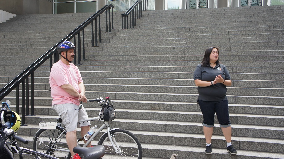 Op de hoek van het hotel hebben we ontbeten en hierna hebben wij rustig dezelfde weg afgelegd als gisteren richting Navy Pier. Al vrij snel vonden wij Bobby’s bike hike netjes op tijd meldden wij ons voor de tour. Onze gids was Erika en zij deelde onze fietsen uit en vertelde de regels waar wij ons aan moesten houden. De meest bizarre regel was toch wel dat we gebruik moesten maken van de hele rijstrook, ;-). Nog een regel was als zij eenmaal op het kruispunt overgestoken was en het verkeerslicht rood werd dan moesten wij gewoon doorrijden, maarrrrr ze zou ons veilig door het verkeer manoeuvreren.