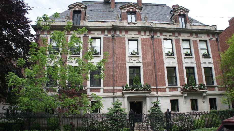 We reden verder en kwamen terecht in de wijk waar de rijken woonden in de negentiende eeuw. De wijk stelde in het begin van de negentiende niet veel voor, maar werd al snel beroemd toen Mrs Bertha Palmer daar ging wonen. Bertha was getrouwd met de rijke Mr Palmer, bij hun trouwen gaf hij haar geen huwelijksnacht in een hotel, nee hoor, hij gaf haar een hotel. The Palmer House Hotel, toevallig het hotel waar wij logeren. Mevr. Palmer wilde op een gegeven moment haar huis niet meer delen met allemaal hotelgasten waarop Dhr Palmer een kasteel voor haar heeft gebouwd buiten de stad, doordat Bertha veel feesten gaf en de upper class niet op en neer wilde reizen hebben ook zij hier huizen laten bouwen, hierdoor is deze wijk uitgegroeid tot een mooie wijk met veel mooie huizen.