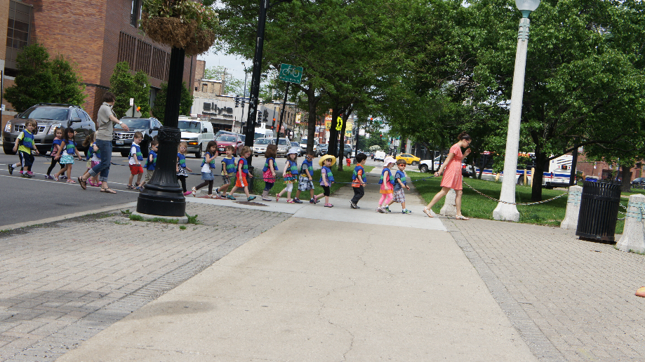 P.D., hier in Villagarcía doen ze net als in Chicago met de peuters, met een lange lijn doen ze excursies.