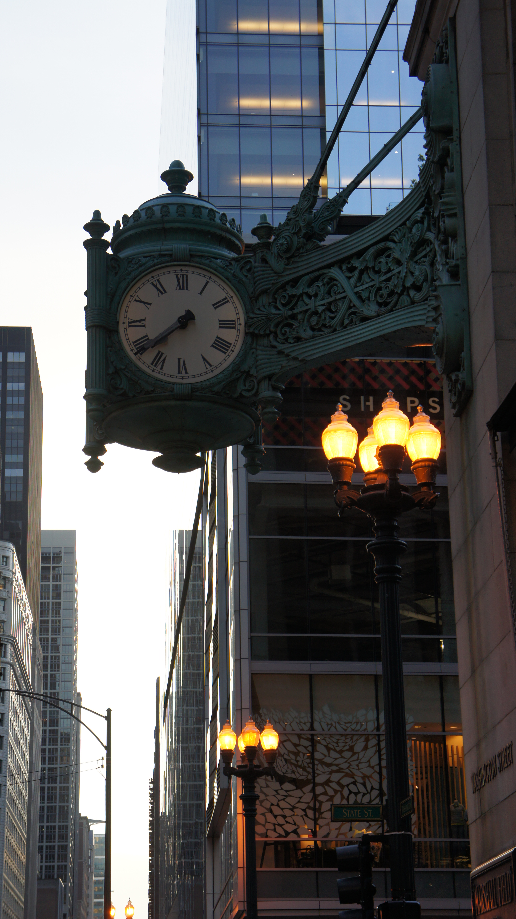 Aangezien we nu niets op de planning hadden zijn we maar weer wat winkeltjes binnen gelopen, nogmaals de Macy’s binnen, wat rond geslenterd. Bij het verlaten van de Macy’s zien we een mooie klok waar natuurlijk een foto van gemaakt moet worden. De kinderen zijn een paar weken geleden op zoek gegaan naar het beginpunt van de Route 66 natuurlijk moesten paps en mams in de voetsporen treden van de kids en zijn we maar op zoek gegaan naar East Adams Street. Na wat foto’s terug naar het hotel want ondertussen was het 20.30 uur en schreeuwde mijn lichaam dat het rust wilde. Op de kamer wat kersjes gegeten en toen gingen de luiken weer toe.