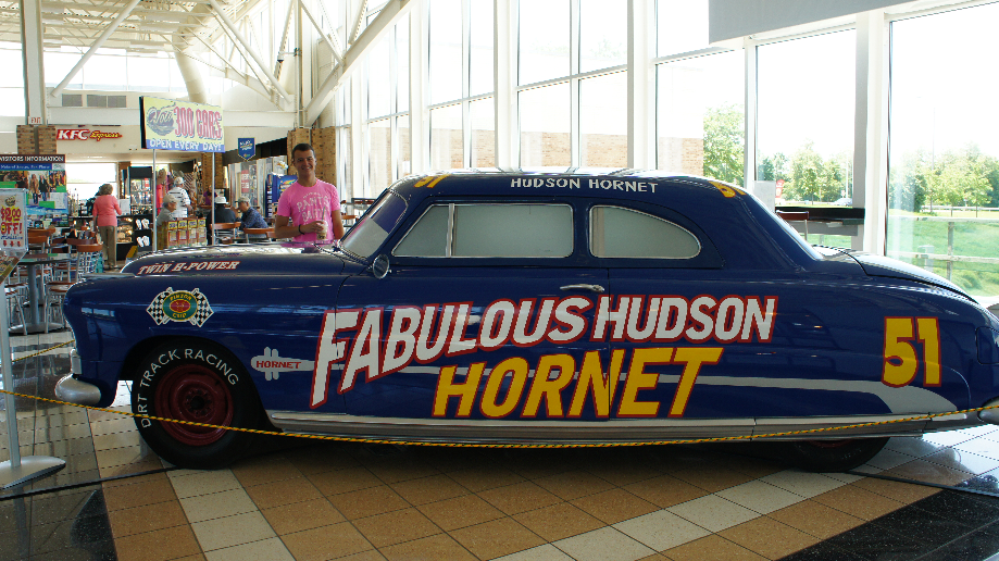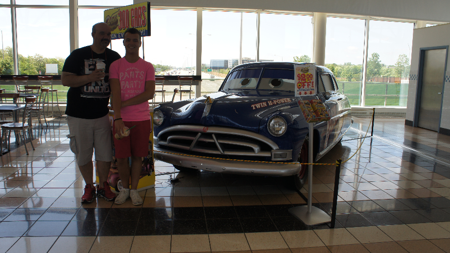 We stoppen bij een Starbucks langs de snelweg en zien daar Hudson Hornet staan, wij zijn wel Cars fans dus moet hij even op de foto. Even dubben we of we naar het museum zullen rijden waar al deze aparte en leuke auto’s staan. Het museum staat in Volo, Illinois, ligt net een beetje uit de route. We besluiten om toch maar door te rijden naar Indianapolis.