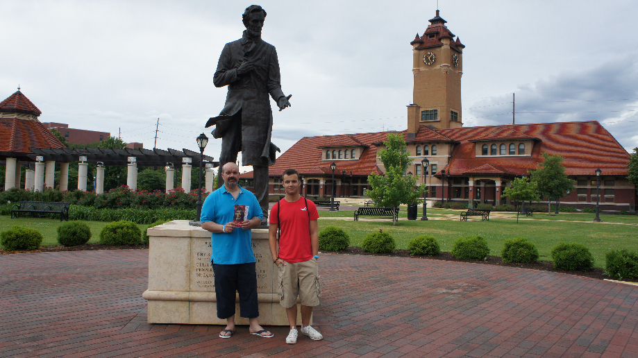 Uiteindelijk is hij twintig jaar advocaat geweest in Springfield voordat hij als president naar Het Witte Huis vertrok. We lopen door het museum en in een razend tempo gaan we door het leven van Lincoln. Natuurlijk willen wij een foto met de familie van Lincoln voor het witte huis, we vragen aan een van de suppoosten of zij een foto van ons drieën wil maken, natuurlijk werd hierna gelijk gevraagd waar we vandaan kwamen en hield ze ons aan de praat. Nadat zij nog wat foto’s van ons bij het ouderlijke huis genomen heeft vinden wij het toch wel tijd worden om het museum te verlaten het is tenslotte al iets na vijven. Het is een leuk museum en we hebben hier geen spijt van en we weten nu veel beter wie Abraham Lincoln was en hoe het tot de Amerikaanse Burgeroorlog is gekomen.