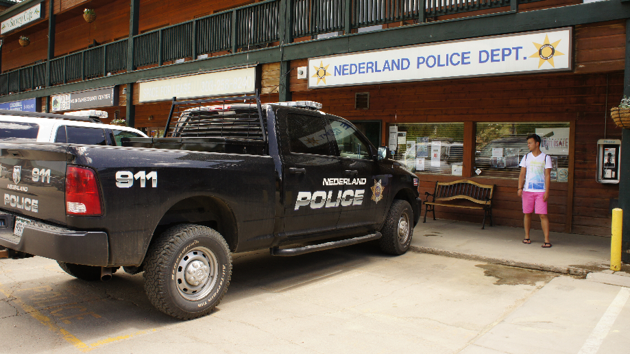 Onze eerste stop wordt Boulder. Op het forum had ik al gelezen dat er in Boulder streng gecontroleerd wordt op snelheid. Ook vandaag stond er een politieauto net voordat we Boulder binnen reden met een laser te controleren. We rijden naar Pearl Street en wandelen het voetgangersdeel tussen 11th St. en 15th St helemaal af. Het is heerlijk weer dus de kinderen genieten weer van de water ornamenten en er treden verschillende straat muzikanten op. Zo vroeg op de ochtend en nu al zo gezellig druk. Er zijn verschillende mooie gebouwen te zien in deze straat en regelmatig kom je borden tegen die je wat vertellen over deze gebouwen.