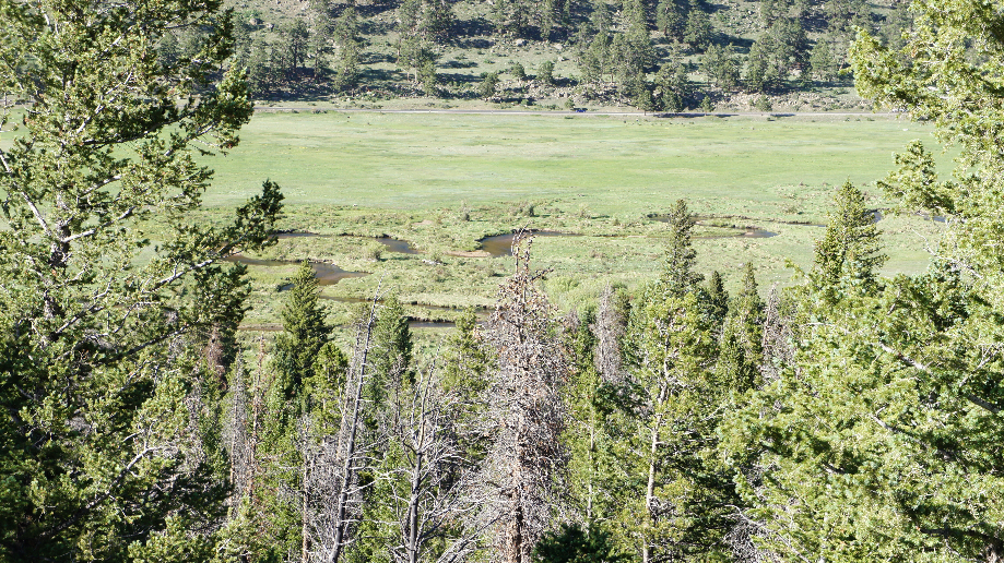 Zo gezegd zo gedaan, het bezoekerscentrum is al gesloten dus hier kunnen we geen informatie meer vragen. De Fall River Road is gesloten dus we kunnen niet naar watervallen. We rijden naar de Horshoe Park en genieten wat van het uitzicht op de Sheep lakes.