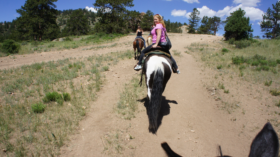 We voelen ons net echte cowboys. Het landschap is mooi en het is stoffig, onze begeleider vertelt dat ze wel wat water kunnen gebruiken, vooral met oog op het brandgevaar. Hij wijst een mooie grote rode Indiaanse bloem aan en wij naïevelingen zoeken de bloem nog ook, zodra we wat dichterbij zijn zien we dat het een brandkraan is. Er schijnen drie van deze brandkranen te zijn.
