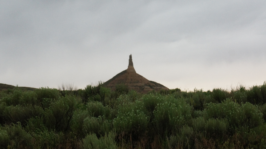 We rijden naar Chimney Rock. Onderweg blijft het regenen en onweren. Tegen de verveling probeer ik met de camera een lichtflits vast te leggen, uiteindelijk geef ik het op en zal ik morgenochtend honderd foto’s moeten verwijderen omdat er niets op staat wat de moeite waard blijkt te zijn. Bij Chimney Rock hebben we een foto gemaakt en zijn weer snel door gereden naar ons hotel in Alliance.