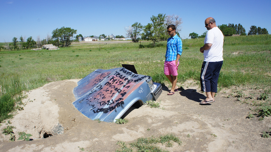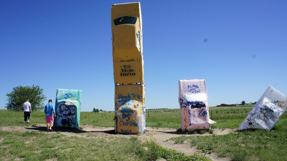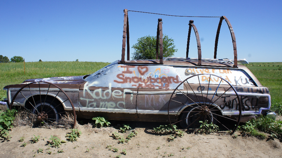 Onze eerste stop vandaag is bij Carhenge. Carhenge is de moderne versie van de hunebedden maar dan in Nebraska. In plaats van stenen hebben ze hier auto’s op elkaar gestapeld. Sommige auto’s zijn ingegraven en ze hebben hier zelfs een tijdscapsule in een auto begraven. We lopen hier ongeveer een kwartiertje rond en dan hebben we alles wel gezien.