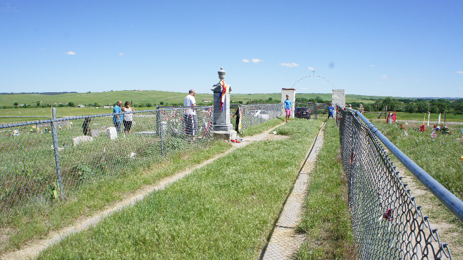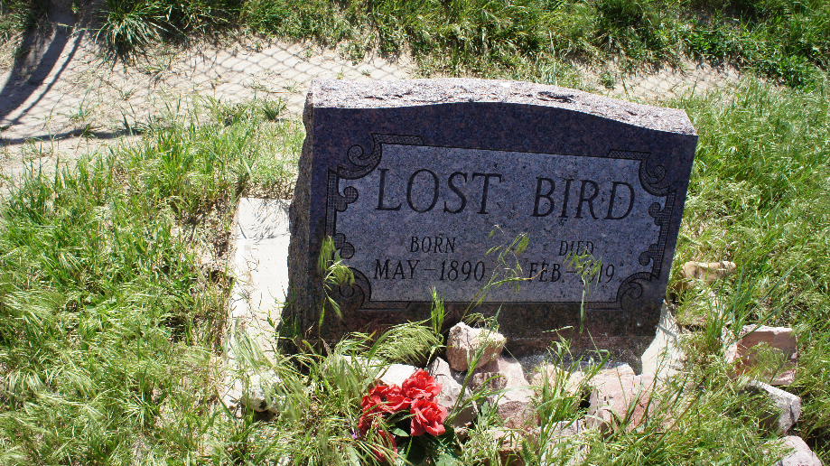 Bij het hek zitten twee Indiaanse kinderen met een beetje koren te spelen. De oudste van de twee heeft een blauw met witte kralen ketting om en biedt die aan voor $20,–. Ze verteld aan Car over het graf van Lost Bird. Zij was de enige overlevende van de slachting bij Wounded Knee. Na vijf dagen wordt zij door de blanken gevonden en gered. Trouwens tegen de tijd dat we weggingen boden ze de ketting aan voor $5,–.