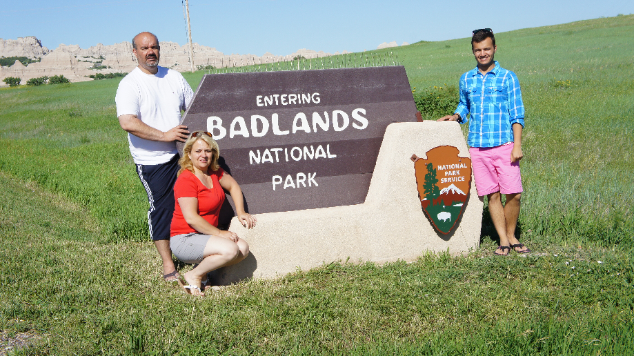Al snel zien we de Badlands. Het park heeft vele ravijnen, kloven en hoodoos, afgewisseld met grote stukken prairie. De rivieren langs de weg hebben de kleur overgenomen van de beige bergen. Met onze Nationale Parkenpas kunnen we gratis naar binnen en al snel zien we rechts een camping. Car rijdt de camping op en raar kijken we op zodra wij een Camper zien staan met Nederlands kenteken.Natuurlijk stap ik uit en praat even met dit jonge stel. Ze komen uit Rotterdam, maken een rondreis van 7 maanden. Ze zijn vertrokken op Koninginnedag. Ze hebben de camper op de boot gedaan in Antwerpen en hebben de camper opgehaald in Baltimore. Ook al had ik nog veel langer kunnen praten met ze, moest ik jammer genoeg afscheid van ze nemen want de jongens zaten in de auto op mij te wachten.