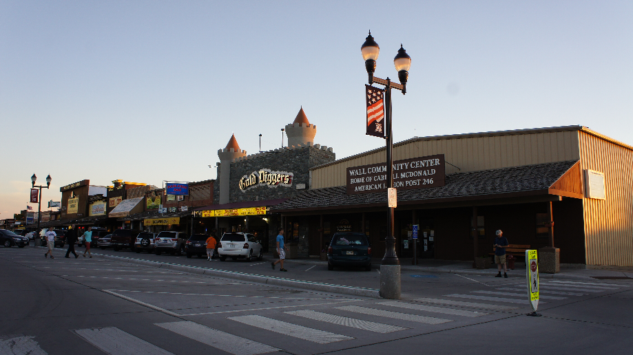 De zon gaat onder en voor ons is het tijd om ons hotel op te zoeken in Wall. Voor het inchecken rijden we eerst naar de Wall drugstore. Wat een geweldige straat is dit. Oude winkeltjes en restaurantjes. Wanneer we na het inchecken terug gaan naar deze straat is er minder leven omdat er al wat winkeltjes gesloten zijn. Wall drugstore gaat om negen uur dicht en eten wordt geserveerd tot half tien. Morgenochtend zullen we hier wel even terugkomen.