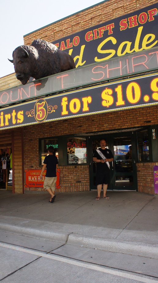 We wandelen, we kopen, we eten en vooral maken we veel foto’s bij Wall Drugstore. Na een uur wordt het toch wel tijd om weer verder te gaan want we hebben veel op het programma staan. Als eerst rijden we snel naar Rapid City. We stoppen bij de Mac voor onze portie cafeïne, sinds kort zijn we erachter dat de mocca caramel best wel goed te drinken is. Onze koffie bij deze Mac zullen we door een dame van rond de vijftig zonder bh niet snel vergeten.