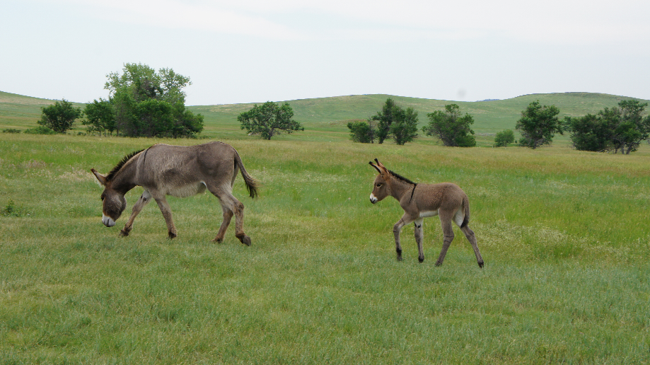 Een paar kilometer verderop zien we een aantal auto’s geparkeerd staan en mensen die in de verte kijken. Dat moet wildlife betekenen. Ook wij parkeren onze luie vierwieler, jongens neem nooit een Kia Sorento, hij is te lui dat hij overschakelt naar een hogere versnelling zodra hij een berg op moet. Wat hebben wij een spijt van deze auto. Maar oké, ik was dus bij die luie vierwieler die ook wij op stal zetten. Het lijken wel paarden in de verte, de verrekijker wordt er bij gepakt en wat blijkt,… het zijn burros. Ze zijn echt heel ver, maar we staan nog geen minuut te kijken of ze beginnen onze kant op te lopen. Blijkbaar zoekt soort toch soort. 😉