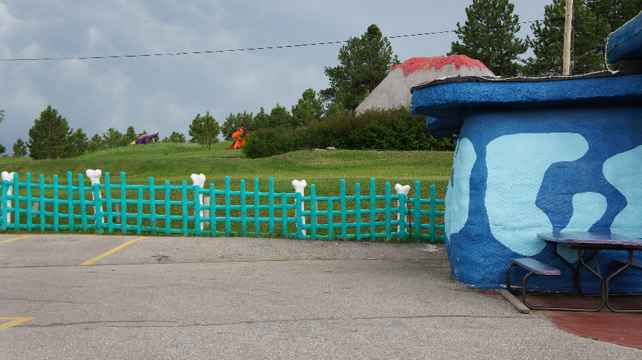 We hebben trek en rijden naar Custer toe, want via een medeblogger van het forum heb ik gelezen dat ze bij Dark Horse Steak and Brew Suicide Chocolate Cake hebben. Car als grote chocolade liefhebber moet dit natuurlijk wel proeven. De mannen weten niet wat ik in petto heb. We zijn het dorp nog niet in of schreeuwen allebei al Pizzahut, sinds dat ik zo ziek ben geworden vorig jaar van een pizza hoef ik dat even niet meer te eten. Ik snauw ze dus allebei af dat we daar niet gaan eten. Ze durven hierna niets meer voor te stellen en wachten gewoon af waar ik ze naar toe breng. We rijden te ver door waardoor we bij het Flintstone’s park terechtkomen.