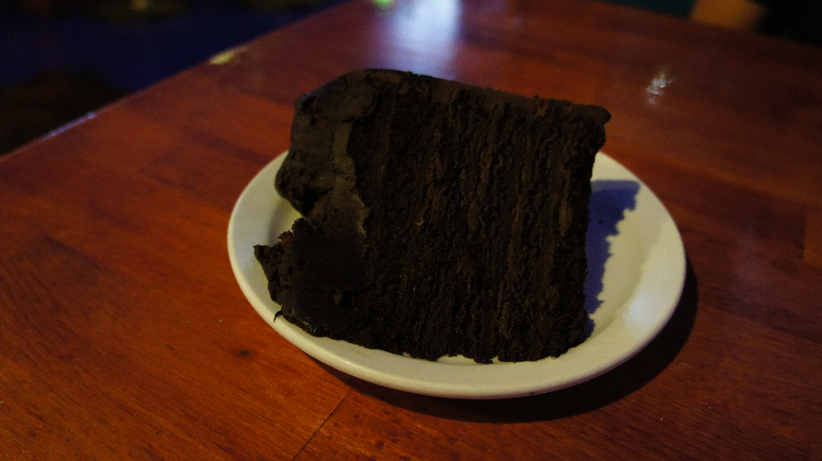 Ziet er heel gezellig uit, in ieder geval kleurrijk. Custer is trouwens ook wel een leuk dorp, ingericht op toerisme natuurlijk maar doet wel westerns aan. Nadat we Dark Horse gevonden hebben vragen we eerst of ze de Suicide Chocolate Cake hebben, die hebben ze niet meer. Ze hebben wel de chocolate chocolate cake. Dat moet het bijna wel zijn. We eten heerlijk en we hebben 1 stuk chocolade cake besteld. Jongens, jongens wat was dit heerlijk. Car en ik hebben dat stuk niet opgekregen en voor het eerst vragen wij een doosje om dit mee te nemen. Want dit is veel te lekker om hier achter te laten.