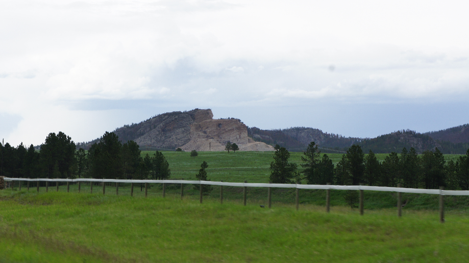Hierna rijden we door naar Crazy Horse Memorial. Dit is het grootste beeldhouwwerk ter wereld. In 1939 wilde Sioux opperhoofd Henry Standing Bear de blanken duidelijk maken dat de Indianen ook helden hadden om te vereren. Hij gaf de beeldhouwer Koczak Ziolkowski opdracht een reusachtig beeldhouwwerk te creëren als tegenhanger van Mount Rushmore. Op 3 juni 1948 zijn ze begonnen met het uithakken van de berg. Sinds die tijd heeft Korczak, en later zijn kinderen, gewerkt aan het beeld dat een voorstelling moet worden van Sioux opperhoofd Crazy Horse zittend op een paard, met gestrekte arm wijzend naar de Black Hills, het oorspronkelijke gebied van de Indianen. Het werk is nog lang niet af, alleen het hoofd is goed zichtbaar. Als het helemaal klaar is moet het 10 keer hoger zijn dan Mount Rushmore.