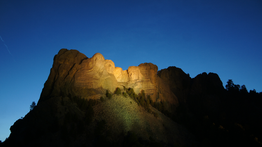 De ceremonie is mooi, het volkslied wordt gezongen en heel langzaam gaan de lichten aan en worden de 4 hoofden zichtbaar. Voor degene onder jullie die niet weten welke presidenten van de Verenigde Staten dit zijn, hier komen ze (vlnr): George Washington, Thomas Jefferson, Theodore Roosevelt en natuurlijk mag niet ontbreken, Abraham Lincoln.