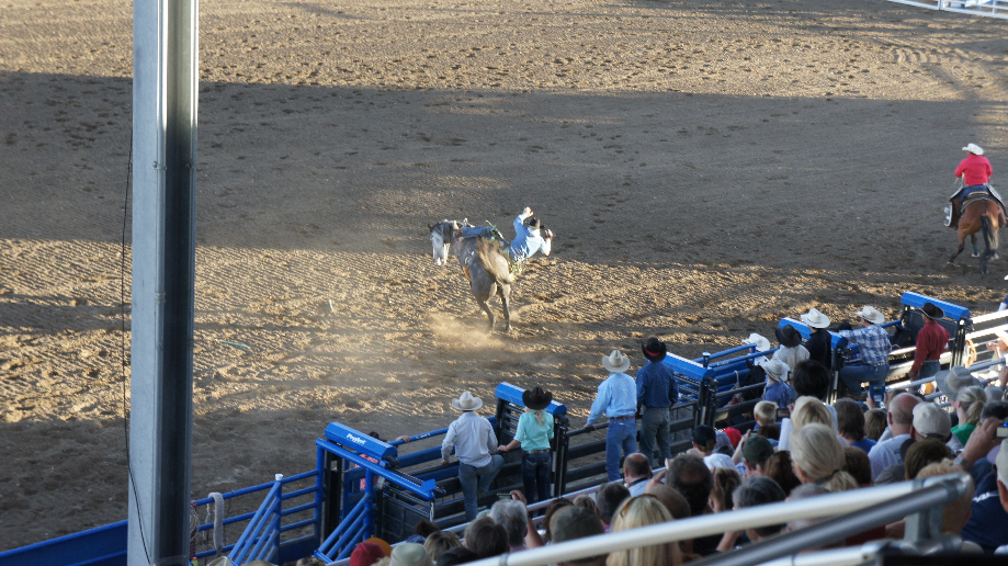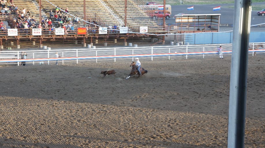 Dan begint het écht. Verschillende onderdelen zoals het rijden zonder zadel (zo lang mogelijk blijven zitten) op een stier en ook zonder zadel rijden op paarden worden afwisselend uitgevoerd. Het eerste onderdeel was Roping of ook wel Tie Down Roping genoemd is. Het vangen van een kalf met een lasso, en dan 3 poten vastbinden. Dit doen alleen de mannen en ze doen het razend snel!