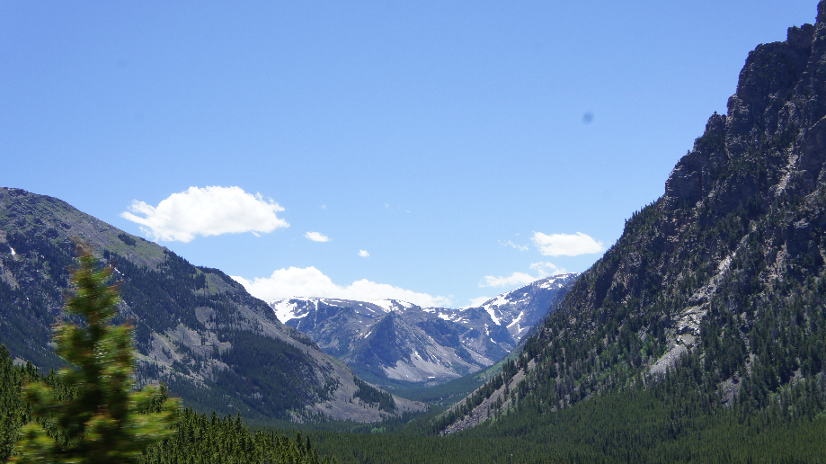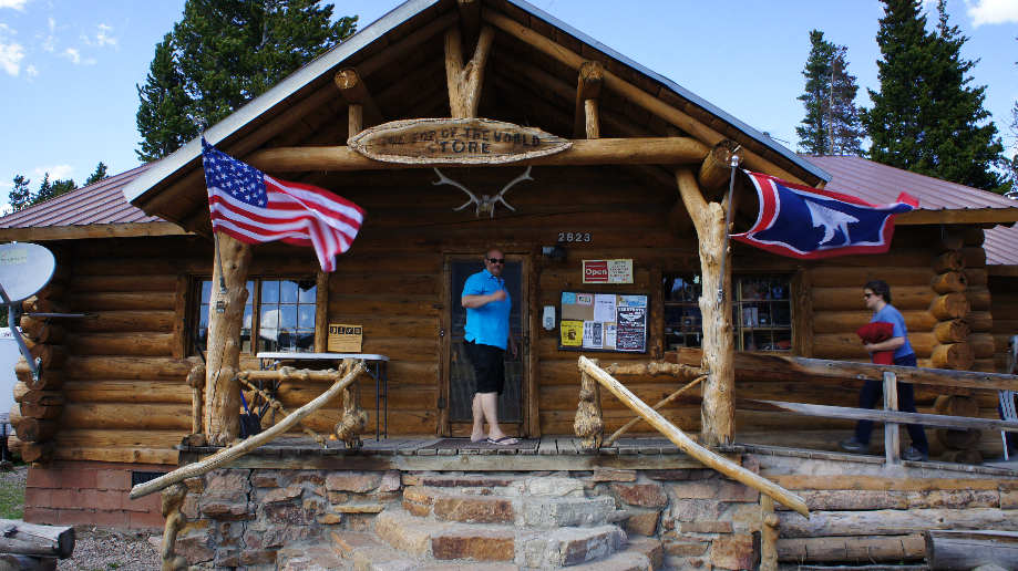 Het winkeltje heet “On top of the World”, en of ze hier op de top van de wereld zitten. Ze verkopen er een beetje van alles en het is leuk om even de benen te strekken. Al snel gaan we verder naar Cooke City. De afdaling naar Cooke City wordt steeds mooier, overal groen en natuurlijk altijd die bergtoppen met die witte vlekken op de flanken. Bij Cooke City stoppen wij bij een benzinepompje waar we iets te drinken kopen. Aangezien mijn witte chocolademelk gewoon heet water is geef ik deze terug aan de charmante dame achter de toonbank. Nou, mevrouw was al niet vrolijk maar nu helemaal niet. Hahahaha, we hebben hier wel weer om kunnen lachen. Trouwens weten jullie dat we nog steeds rond die 30 graden hangen. Ons hoor je dit jaar niet klagen over de zomer. Wij hebben gelukkig ons portie vitamine D nu al binnen voor dit jaar.