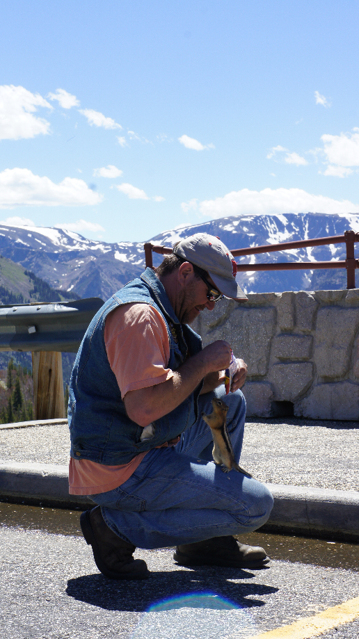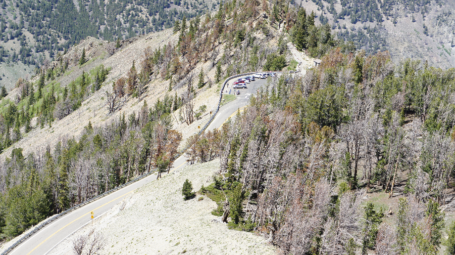 We rijden verder en komen steeds hoger en hoger. Bij Rock Creek Vista Point stoppen wij even, we eten hier een broodje en zien hoe anderen met de eekhoorntjes spelen en ze voeden. Ondertussen zitten we al op bijna 3000 m hoogte, de hoogte voelen we aan onze kortademigheid. Gelukkig geen hoofdpijnen of misselijkheid. Doordat we al enkele weken op een behoorlijke hoogte zitten heeft het lichaam rustig aan kunnen wennen. We dachten dat we nu toch wel bij de top waren toen we tot onze verbazing nog verder moesten klimmen.