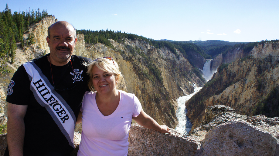 We rijden heel de North Rim af en komen dan weer terecht in Canyon Village. We rijden weer richting zuiden en in plaats van de North Rim te pakken nemen we nu de South Rim. We rijden over de Yellowstone River en maken onze eerste stop bij Uncle Tom’s Point. Vanaf deze kant zijn de Upper Falls heel erg mooi te zien. We wandelen een stukje over de Uncle Tom’s Trail maar besluiten om niet de 300 treden naar beneden te lopen omdat we alle drie onze teenslippers aan hebben. Natuurlijk zijn we niet dom, we weten heus wel als je 300 naar beneden loopt we er ook weer 300 omhoog moeten. Onze wandeling was leuk genoeg en we hebben weer genoeg calorietjes verbrand.