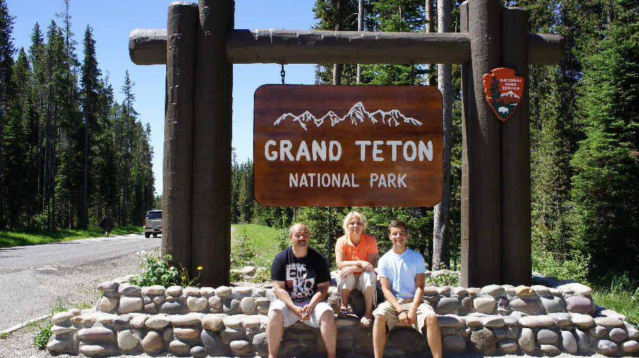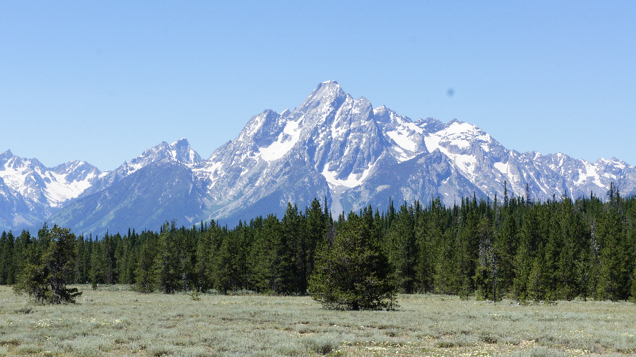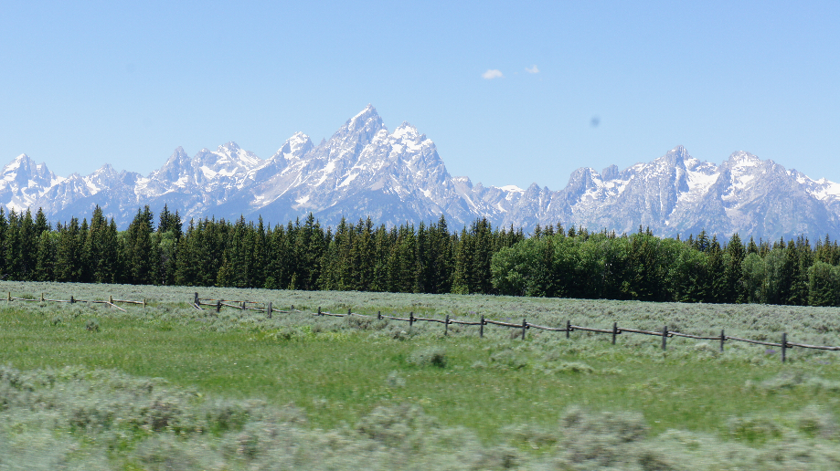Je rijdt het Yellowstone Park uit en via John D. Rockefeller Jr Memorial Parkway rijd je zo Grand Teton NP in, er zijn geen controlehokjes. We hebben dan ook geen parkmap en dat vinden de jongens volgens mij helemaal niet erg. Ze zijn het groen meer dan zat en ik voel me niet zo gezond, dus ik heb ook weinig zin om de Tetons in te rijden. Natuurlijk worden er wel foto’s gemaakt, de Tetons zijn echt schitterend met hun witte toppen. We laten het Park voor wat het is en rijden plankgas naar Jackson Hole.