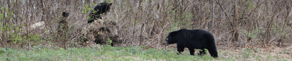 We hebben nog 50 mijlen te gaan en het regent nog steeds, Car is nog steeds in zijn hummetje, want hij kan lekker karren door de haarspeldbochten en hij hoeft niet te wandelen. We zijn er duidelijk over eens dat Shenandoah NP voor ons helemaal onderaan de lijst komt met nogmaals te bezoeken parken. Ik kan me voorstellen dat het in de herfst mooi moet zijn met alle verschillende kleuren bladeren aan de bomen. Begin mei is er geen moer aan, de bomen zijn nog kaal, er is nergens bloesem te zien en door het grijze weer van vandaag zijn alle bomen ook grijs. We rijden bocht in, bocht uit en ineens schreeuw ik het uit, rechts langs de kant van de weg zien we een Black Bear. Wauwwwww, hertjes langs de weg zijn leuk en schattig, maar een beer in de vrije natuur… daar word je echt stil van. We hebben hier zeker 10 minuten van genoten totdat hij dieper het bos in liep. Ondertussen reed een camper ons tegemoet en de chauffeur vertelde ons dat een stuk verderop een mama beer was met twee kleintjes. We rijden door en al snel zien we een auto stil staan, als er een auto stil staat langs de kant van de weg dan weet je dat er wat te spotten valt. Nu kan onze dag helemaal niet meer stuk, daar staat mama beer heerlijk te grazen en natuurlijk zal ze ons met een oog wel in de gaten houden, maar het kwam bij ons over alsof ze ons totaal niet interessant vond. Na ongeveer vijf minuten komen ook haar twee jongen tevoorschijn. Geweldig, wij zijn zo blij als kleine kinderen in een speelgoedwinkel. We hebben 4 beren gezien, we zouden al heel veel geluk hebben als we er een zouden spotten, laat staan 4 beren op twee verschillende plekken. De kleintjes houden het al snel voor gezien en lopen het bos weer in en mama loopt er achteraan. Wij vervolgen, met glinsterende oogjes en een grote glimlach op ons gezicht, onze weg.