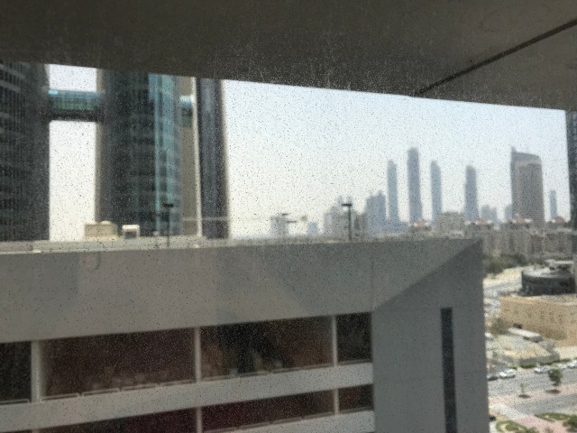 De foto is niet wazig hoor, dit is net als thuis, gewoon smerige ramen, alleen hier hebben ze een excuus want ze leven in een grote zandbak.