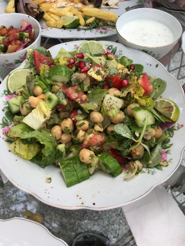 We hebben heerlijk ontbeten/geluncht en de sfeer is super. Zeker aan te raden. Jaaaaa, natuurlijk drink ik gewoon koffie bij mijn eten, dit keer geen Caramel want ik eet geen suiker. De gegrilde kaas is heerlijk, de salade super maar veel te veel en de lam koteletjes smaken niet echt naar lam maar naar heerlijk gegrilde stukjes vlees. Marco waar moeten wij morgen ontbijten?