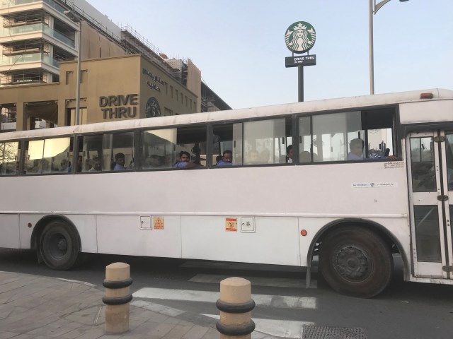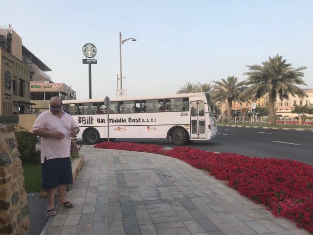 Deze zaak moet van een gallego zijn. Al snel zijn we klaar met al die stoffen winkels en lopen we terug naar ons paard. LWe rijden naar het noorden langs het water en rijden zo langs de Wereld Eilanden naar de Burj Al Arab en vandaar door naar de Jumeirah Palm. Per ongeluk komen wij een zeemeermin tegen, al snel staat ons arabiertje op stal en drinkt Car een cold hot Chocolate en ik mijn koffie met caramel. Oh ja, dat vergeet ik bijna te vertellen jongens, luister dan, we zien ongeveer tien bussen vertrekken met allemaal Pakistaanse/Hindoestaanse arbeiders. Waar zullen ze heen gaan? Het lijken net van die Amerikaanse gevangenis bussen en je ziet alleen maar kleine hoofden boven het raampje tevoorschijn komen, echt naar of zielig om te zien. Ik weet niet zo goed hoe ik het moet omschrijven.