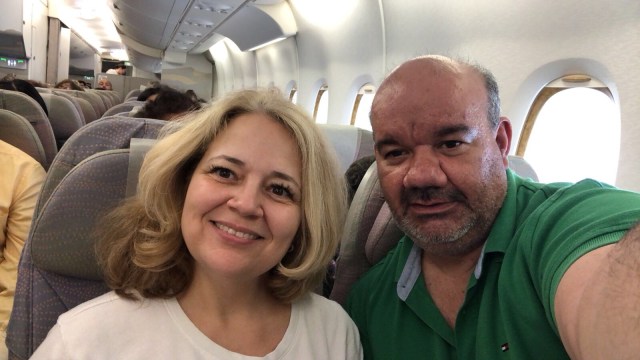 Droppen van de koffer gaat prima geen bijzonderheden, alleen kom ik er nu achter dat Car en ik zijn zonnebril zijn vergeten, wat een ellende, moet mijn arme man gewoon vier dagen zijn ogen dichtknijpen. Douane gaat ook soepeltjes, paspoorten zijn nieuw dus vallen nog niet uit elkaar en al snel zijn we door alle controles heen. Terwijl we naar onze gate wandelen vind ik het toch wel een beetje naar voor Car dat hij de komende dagen zijn ogen moet dichtknijpen dus ik spoor hem aan om een nieuwe zonnebril te kopen. Nu dat ik dit aan het typen ben heb ik er alweer spijt van, want het had toch wel mooi geweest als hij met dicht geknepen ogen had rondgelopen. Tassen, schoenen en goud kopen zonder dat hij het zou zien. Ach, zo ben ik, eerst praten en dan nadenken.