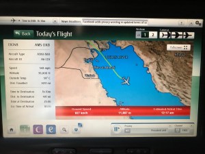 Het boarden begint zodra wij bij de gate aankomen, Car loopt nog een rondje en ik ga nog even zitten, we vliegen met een A380-800, dit betekent dat er 80.000 mensen in het gigantische ijzeren monster passen, voordat iedereen gezeten is zijn we weer een uur verder en ik moet zo dadelijk al 6,5 uur stil zitten. Wij stappen dus als een van de laatste in. Geen stress, geen geduw gewoon relax.