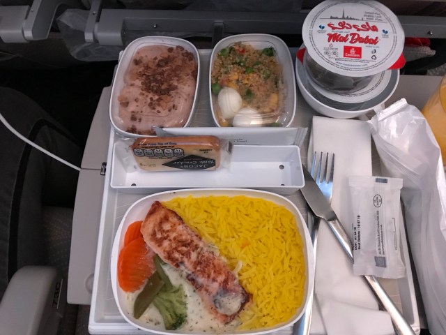 De rest kunnen jullie in omgekeerde volgorde lezen op dag 1. Het enige verschil is dat op de menukaart nu staat zalm en chicken. Ik ga voor de zalm en Car gaat voor de kip.